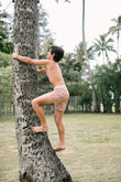 We take existing plastic rubbish, largely from discarded plastic water bottles, and break them down to create fine thread fibers that are then blended with our 4-way stretch swim fabric.