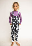Kid's Denim Overalls in Black Plumeria
