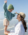 If you’re unsure of sizing and don’t have a soft measuring tape, place a string/ribbon/shoelace around your or your child's head just above the ears and across the mid-forehead (where they would naturally wear a hat). You want the string to be held in place around the head firmly, but not super tight. Don't stress too much — remember, they’re adjustable! From there, use a ruler or measuring tape to measure the string.